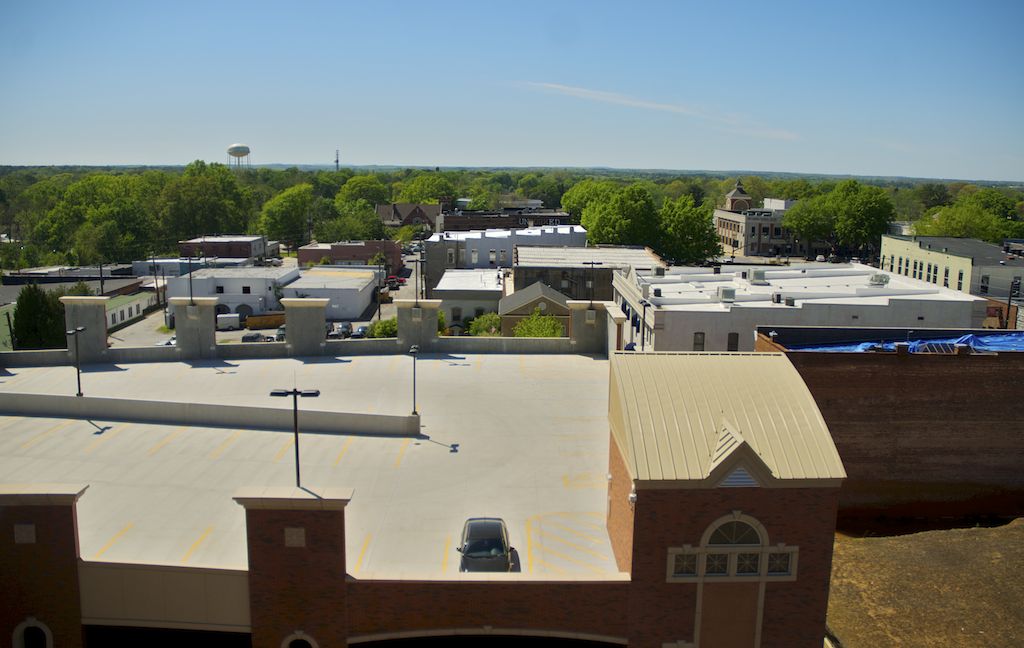 | Carrollton City Hall as scene from the fifth floor of the Carroll County Judicial Center. |